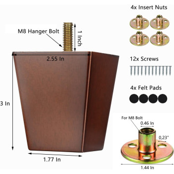- Maricome 3 Inch Wood Sofa Legs For Furniture Set Of 4, Square Solid Replacement Wooden Furniture Feet With Mounting Plates Screw In