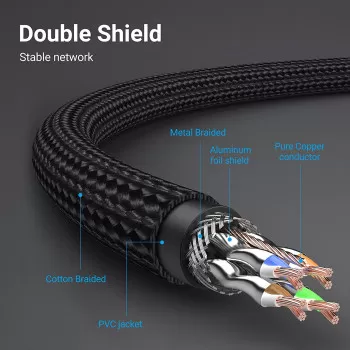 VENTION Cat 8 Ethernet Cable 40Gbps 2000MHz High Speed LAN Patch RJ45 Cable S/FTP Twisted Pair Network Cable for Switch, Router, Patch Panel, PS4, Xbox, Data Center (Cat.8 SFTP Braided, 8 Meter)