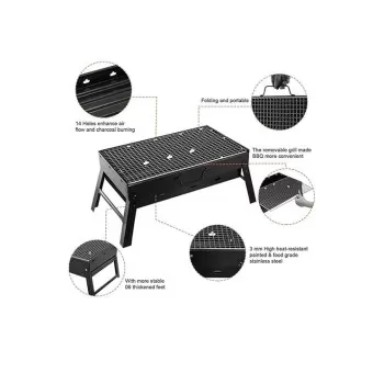 Portable Bbq Charcoal Grill Black 20 x 35 x 27cm