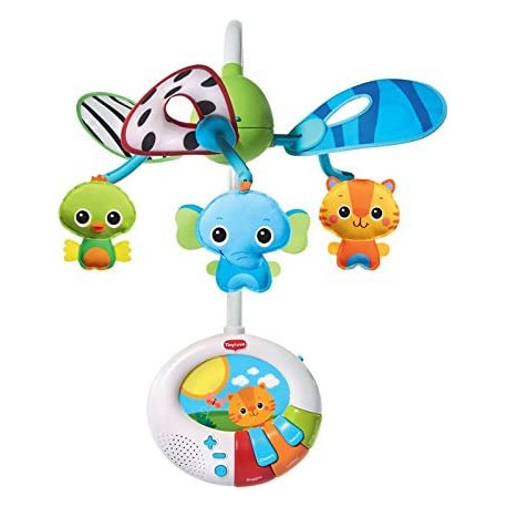 Unique dual-motion system introduces a new concept to the mobile category: magical hide-and-seek show that hides and reveals cute animal characters Adorable stand-alone piano with fun light-up feedback engages and amuses babies and toddlers 40 minutes of music include 15 melodies in a variety of musical categories:classical, nature, lullaby, white sound and even reggae Array of fun features packed into one mobile: smiling animal figures, stars & moon nightlight and detachable music box
