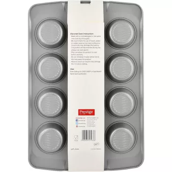• The Prestige 12 cup muffin pan is perfect to bake Sweet muffins, savoury muffins, cupcakes, bread rolls and more. Due to the use of sturdy steel in its construction, this 12 cup muffin tin from Prestige is durable, lightweight, and long-lasting. This muffin cup features smooth exterior and non-stick coating interior for simple food release and cleanup. The specially designed non stick 12 cup muffin tin is used in ovens, microwaves, freezers, or dishwashers. So easy to use, you can make your muffins easily with the non stick muffin maker so that you can easily slide cupcakes down with your fingers. Great for a wide range of baking tasks, this muffin cup can be used to make baked cakes, brownie cakes, or chocolate, egg muffins, and more.