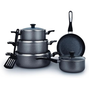 Impex 10-Piece Royal Nonstick Granite Coated Cookware Set, Fry Pan 24Cm,3 Saucepan With Lid 28 Cm, Milk Pan With Lid 18Cm And Spatula, Pfoa Free-Ncb 7110