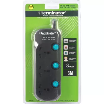 TERMINATOR 6 Way Universal Power Extension Socket with 3M Cable TPB-6G