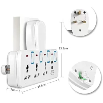 TERMINATOR TPB 614 4 Way Universal Power Socket, 3 Meter Cable Length, White
