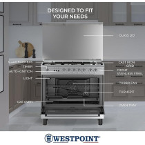 Westpoint 4 Burner Countertop Gas Hob 60 Cm With Auto Ignition, Cast Iron Support, Full Safety Features, Straight Flame, Stainless Steel Body, Enamabled Burners, WGUJ-6640GIF