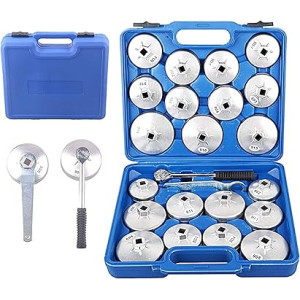 The Abbasali 23Pcs Aluminum Alloy Cup Type Oil Filter Cap Wrench Socket Removal Tool Set is a comprehensive and durable solution for removing oil filters on a wide range of vehicles, from cars to motorcycles and small engines. Designed to handle different oil filter sizes, this set includes 23 different wrenches made of high-quality aluminum alloy for easy and efficient oil filter removal without causing damage to the filter housing.