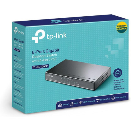 TP Link TL SG1008P Gigabit PoE Switch, 64W, Desktop, Plug Play, Sturdy Metal with Shielded Ports, Fanless, Limited Lifetime Protection, Traffic Optimization, Unmanaged, Black, 8 Port w/4 PoE Port