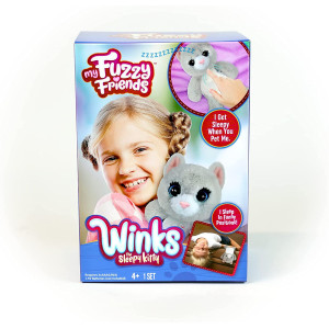 Winks is the huggable, snuggable, cuddly kitten that falls asleep when you play. Pet his back, scratch his ears, or tickle his belly. Pet just the right spot and his big dreamy eyes will slowly close as he gently falls asleep. Winks makes the cutest sounds. Soft floppy arms and legs help him snooze in silliest positions...Is there anywhere he won't sleep?