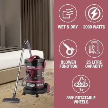 Midea Drum Vacuum Cleaner 2200 Watts, 23 Liters Ultra Large Tank Dust Capacity With Adjustable Tube, Removable And Washable Filter, Rug Floor Nozzle, Blower Function, Best For Home And Office, MDVC23